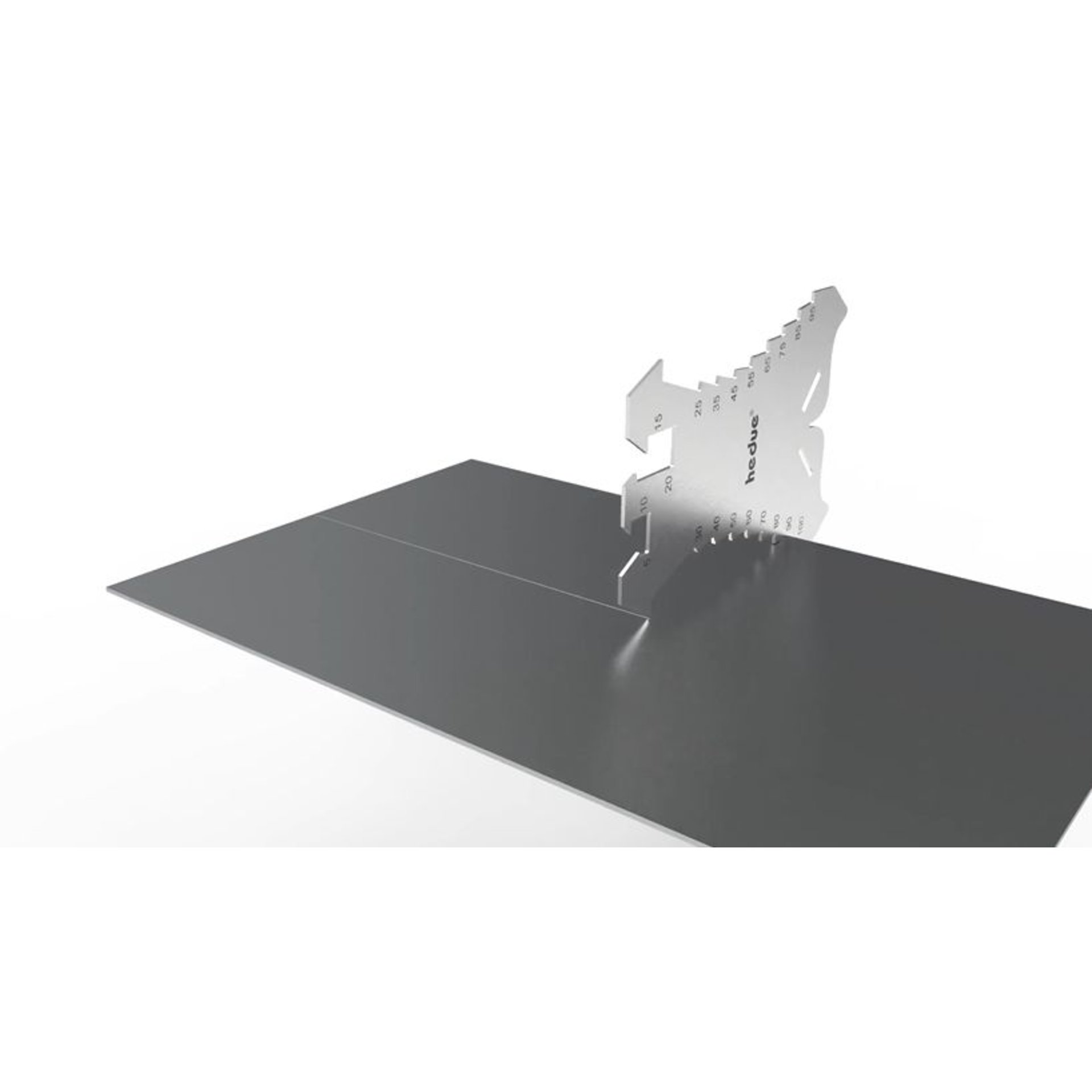 Anreißschablone für Dachdecker, Klempner und Spengler mit 20 Anschlagkanten von 5 bis 100 mm.